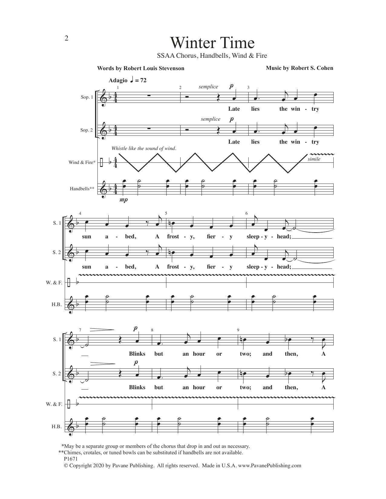 Download or print Robert S. Cohen Winter Time sheet music, chords and digital score arranged for SSAA Choir. This Concert score includes 11 page(s).