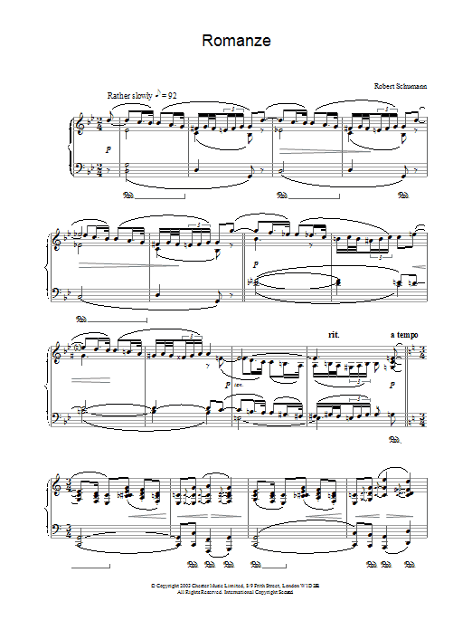 Download or print Robert Schumann Romanze sheet music, chords and digital score arranged for Piano Solo. This Classical score includes 2 page(s).