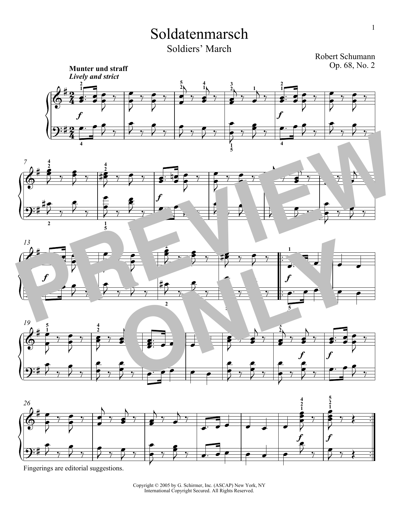 Download or print Robert Schumann Soldier's March (Soldatenmarsch), Op. 68, No. 2 sheet music, chords and digital score arranged for Piano Solo. This Children score includes 1 page(s).