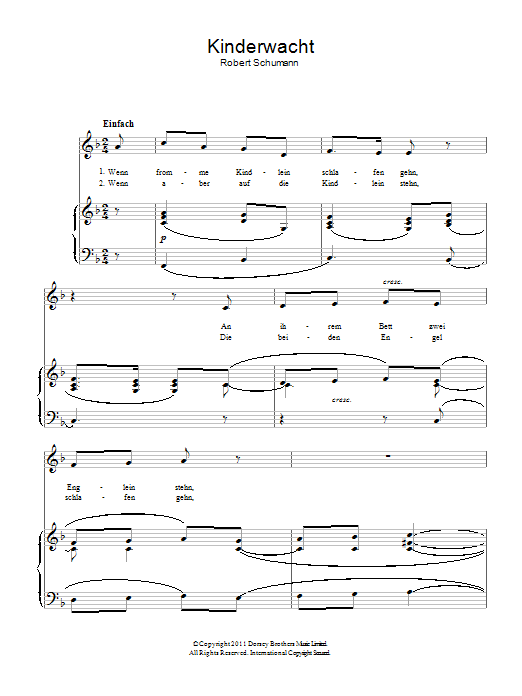 Download or print Robert Schumann The Children's Watch (Kinderwacht) sheet music, chords and digital score arranged for Piano & Vocal. This Classical score includes 2 page(s).