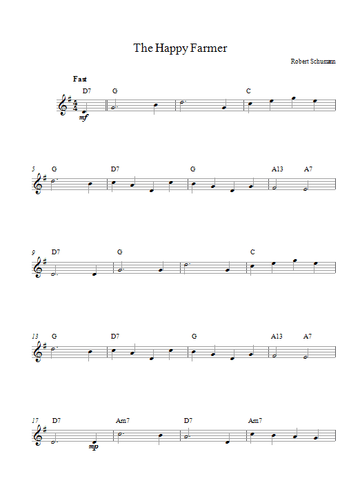 Download or print Robert Schumann The Happy Farmer sheet music, chords and digital score arranged for Piano Solo. This Classical score includes 2 page(s).