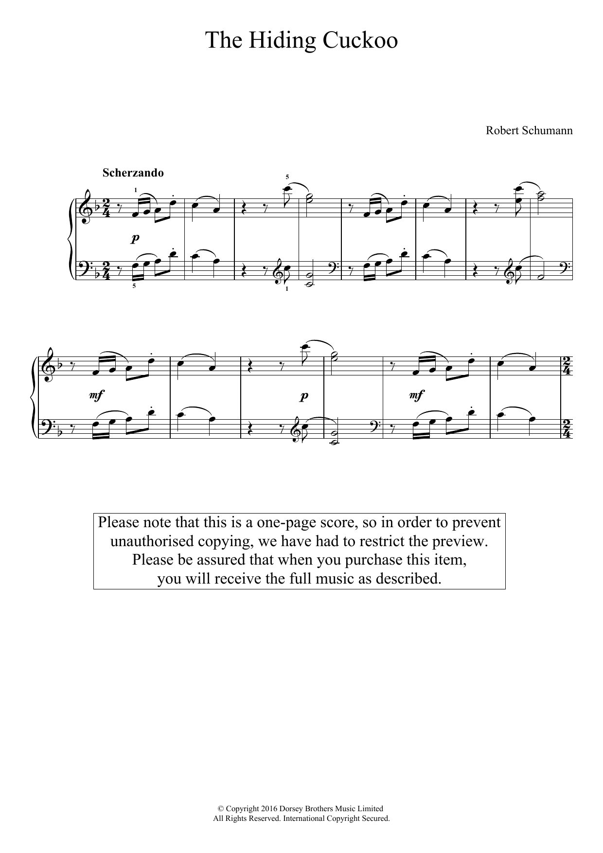Download or print Robert Schumann The Hiding Cuckoo sheet music, chords and digital score arranged for Easy Piano. This Classical score includes 2 page(s).