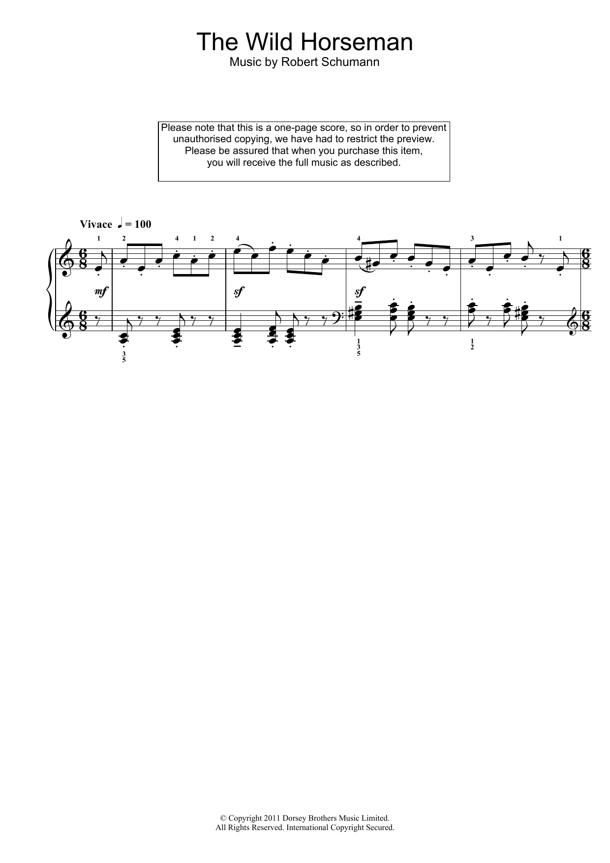 Download or print Robert Schumann The Wild Horseman sheet music, chords and digital score arranged for Piano Solo. This Classical score includes 2 page(s).