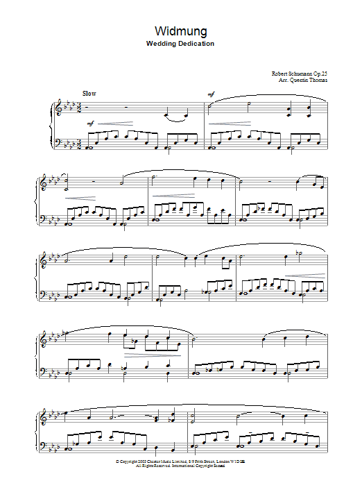 Download or print Robert Schumann Widmung sheet music, chords and digital score arranged for Piano Solo. This Classical score includes 5 page(s).