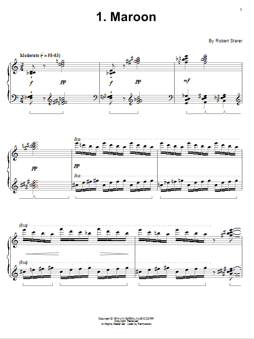 Download or print Robert Starer Maroon sheet music, chords and digital score arranged for Piano Solo. This Classical score includes 2 page(s).