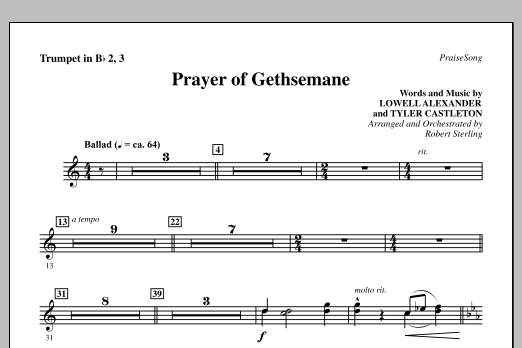 Download or print Robert Sterling Prayer Of Gethsemane - Bb Trumpet 2,3 sheet music, chords and digital score arranged for Choir Instrumental Pak. This Easter score includes 1 page(s).