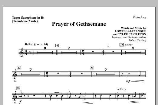 Download or print Robert Sterling Prayer Of Gethsemane - Tenor Sax (sub. Tbn 2) sheet music, chords and digital score arranged for Choir Instrumental Pak. This Easter score includes 1 page(s).