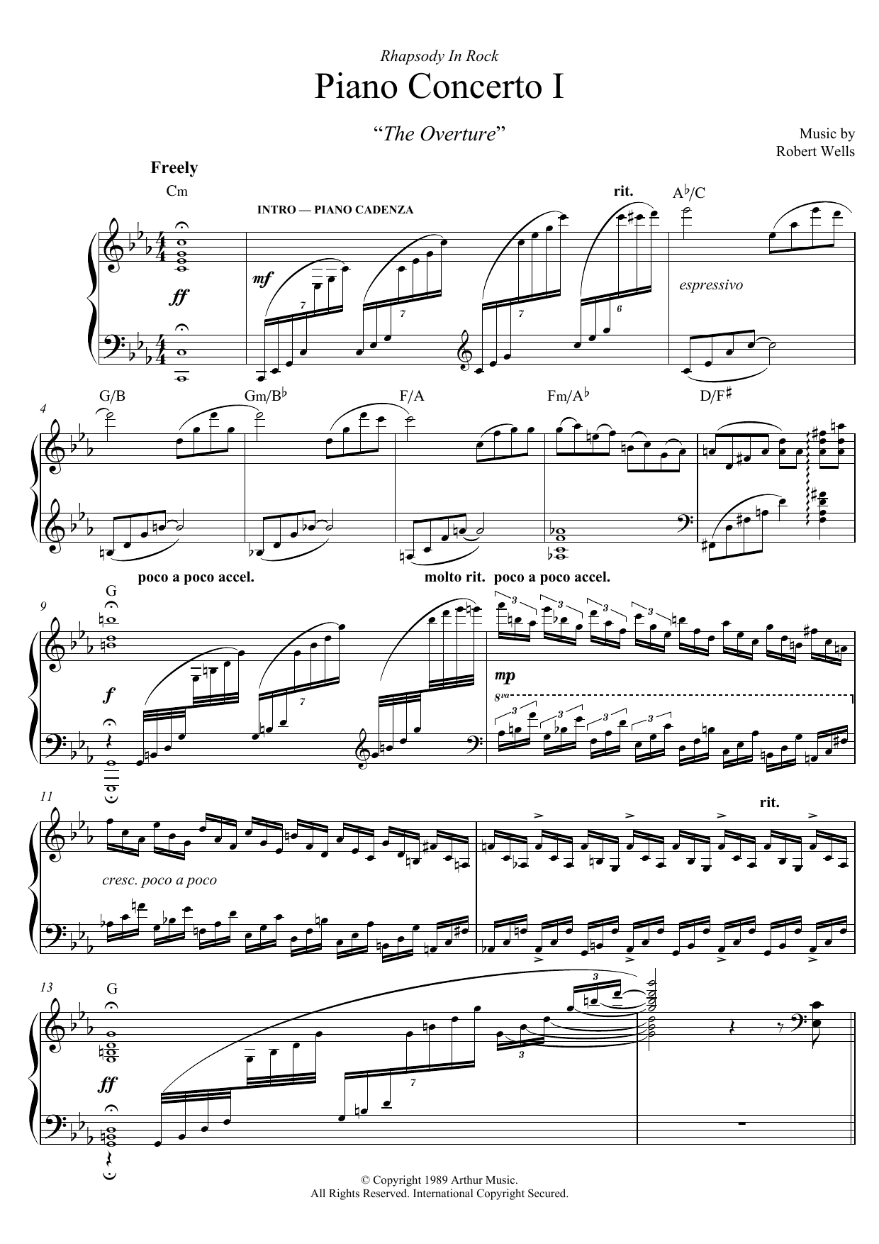 Download or print Robert Wells Piano Concerto: I. The Overture sheet music, chords and digital score arranged for Piano Solo. This Jazz score includes 8 page(s).