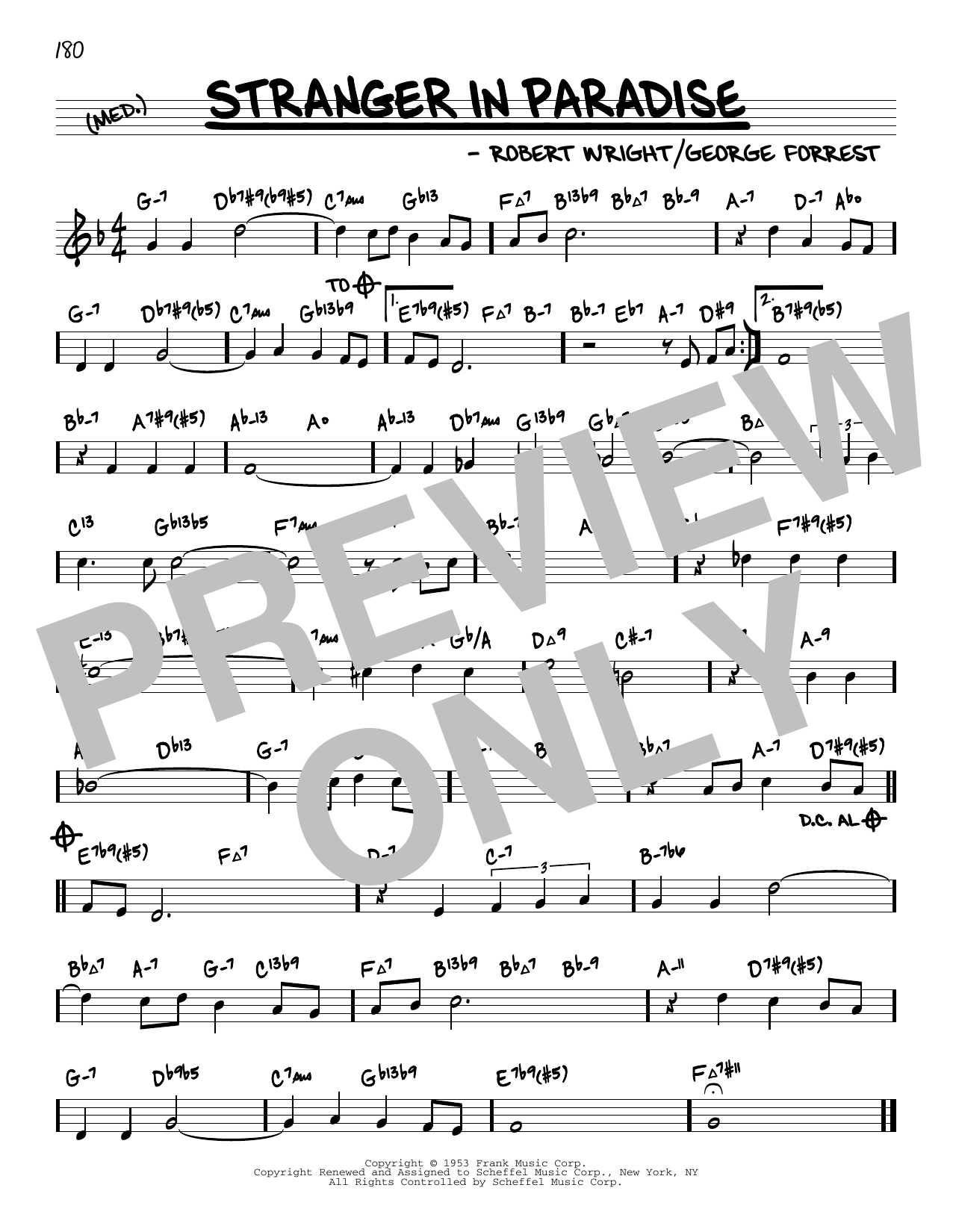 Download or print Robert Wright Stranger In Paradise (arr. David Hazeltine) sheet music, chords and digital score arranged for Real Book – Enhanced Chords. This Jazz score includes 1 page(s).
