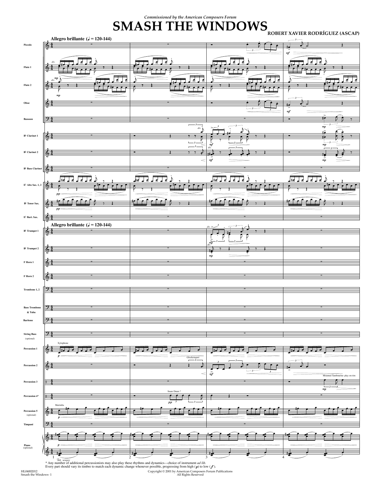 Download or print Robert Xavier Rodríguez Smash the Windows - Full Score sheet music, chords and digital score arranged for Concert Band. This Concert score includes 25 page(s).