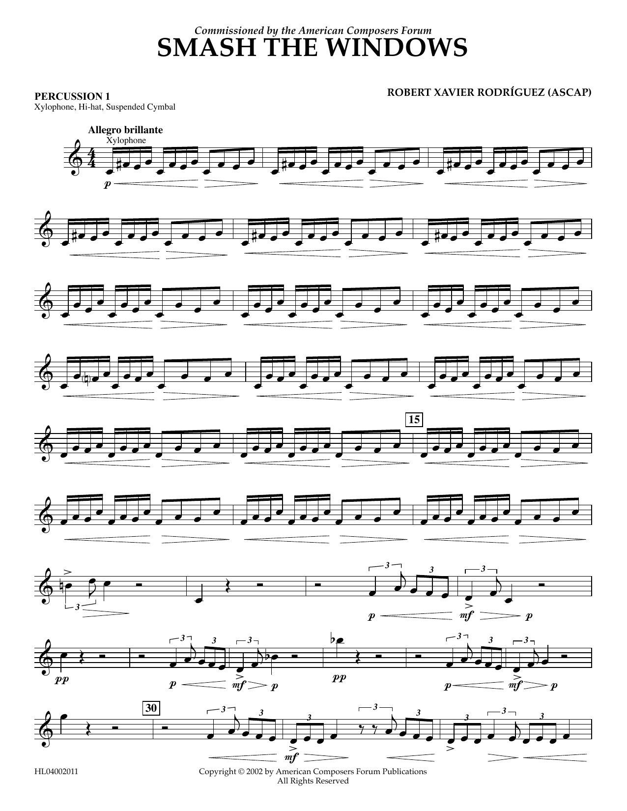 Download or print Robert Xavier Rodríguez Smash the Windows - Percussion 1 sheet music, chords and digital score arranged for Concert Band. This Concert score includes 2 page(s).