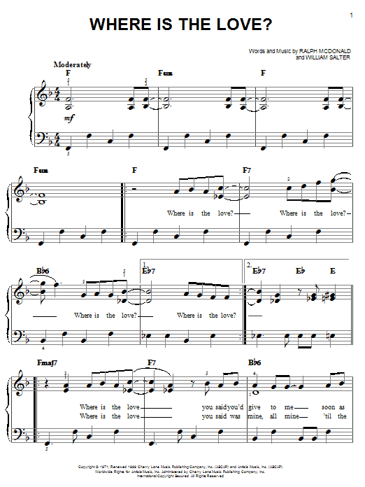 Download or print Roberta Flack Where Is The Love? sheet music, chords and digital score arranged for Guitar Chords/Lyrics. This Pop score includes 3 page(s).