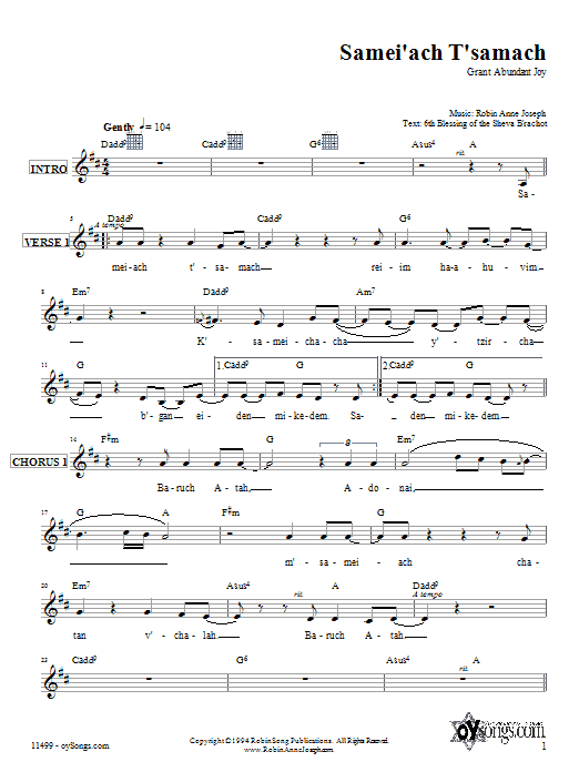 Download or print Robin Joseph Samei'ach T'samach sheet music, chords and digital score arranged for Lead Sheet / Fake Book. This Traditional score includes 2 page(s).