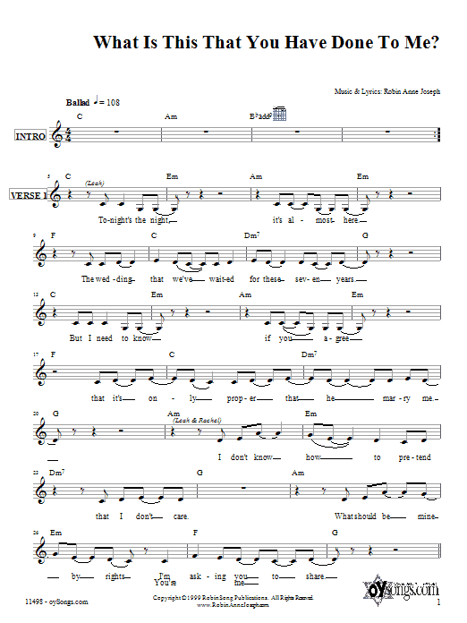 Download or print Robin Joseph What Is This That You Have Done To Me? sheet music, chords and digital score arranged for Lead Sheet / Fake Book. This Traditional score includes 4 page(s).