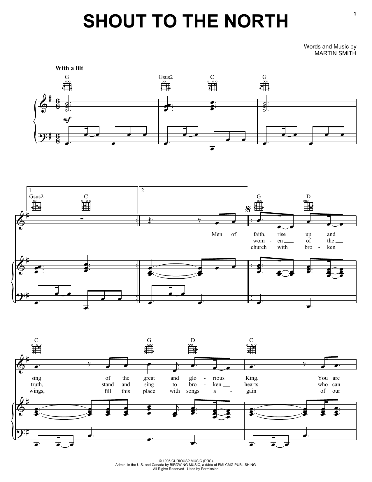 Download or print Robin Mark Shout To The North sheet music, chords and digital score arranged for Piano, Vocal & Guitar Chords (Right-Hand Melody). This Christian score includes 5 page(s).