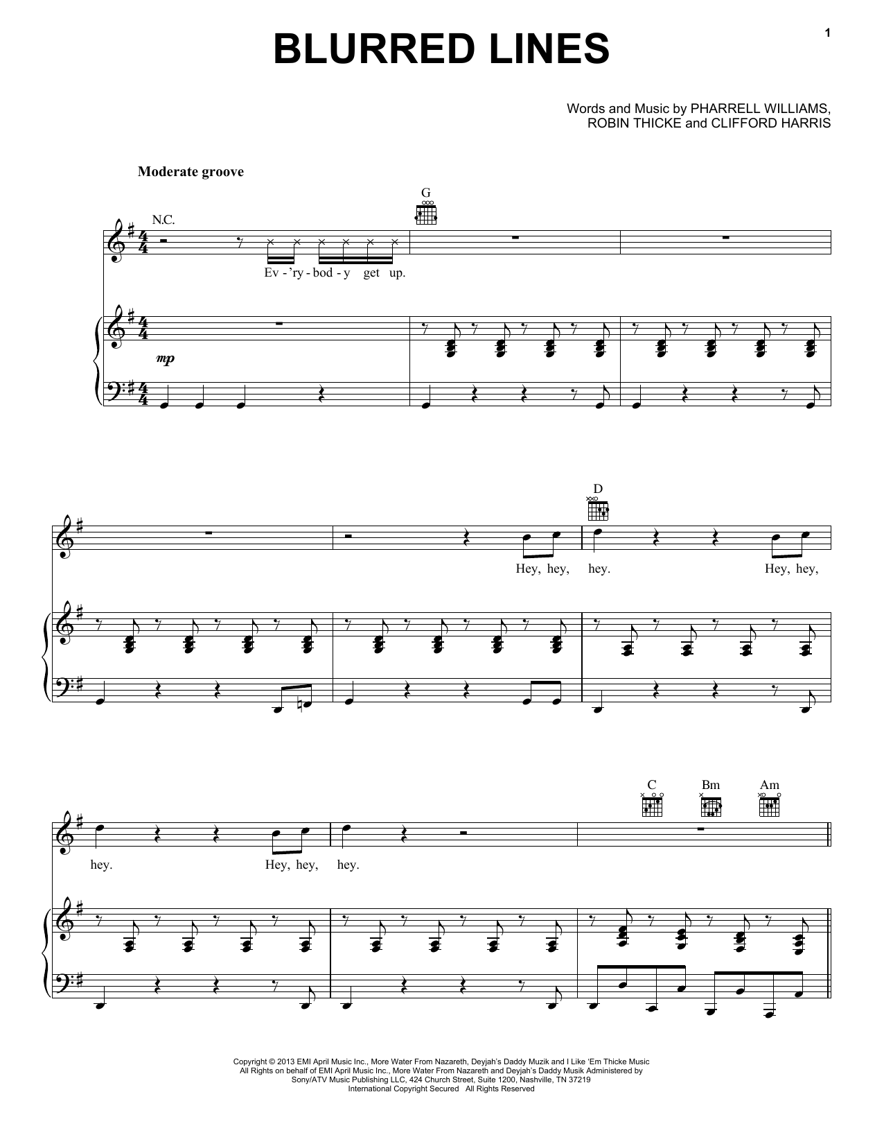 Download or print Robin Thicke Blurred Lines sheet music, chords and digital score arranged for Piano, Vocal & Guitar Chords (Right-Hand Melody). This Pop score includes 9 page(s).