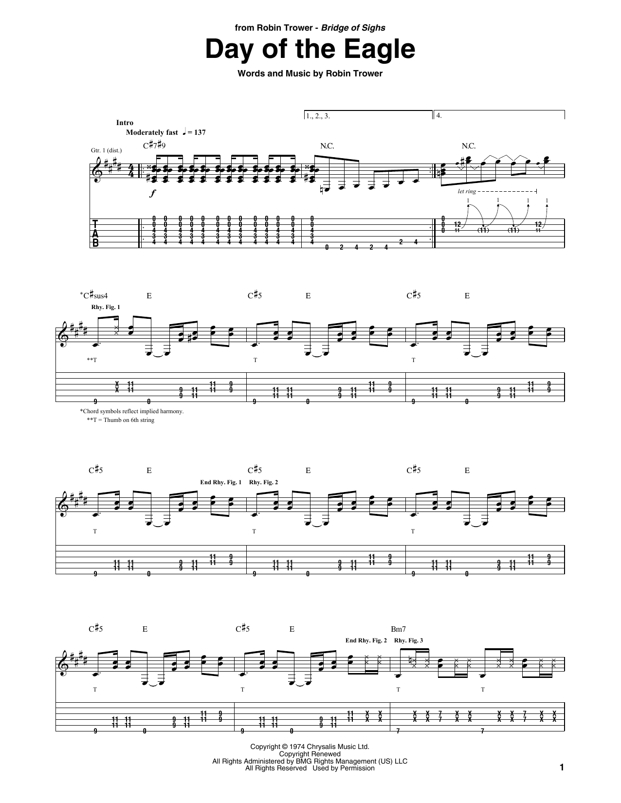 Download or print Robin Trower Day Of The Eagle sheet music, chords and digital score arranged for Easy Guitar Tab. This Blues score includes 3 page(s).