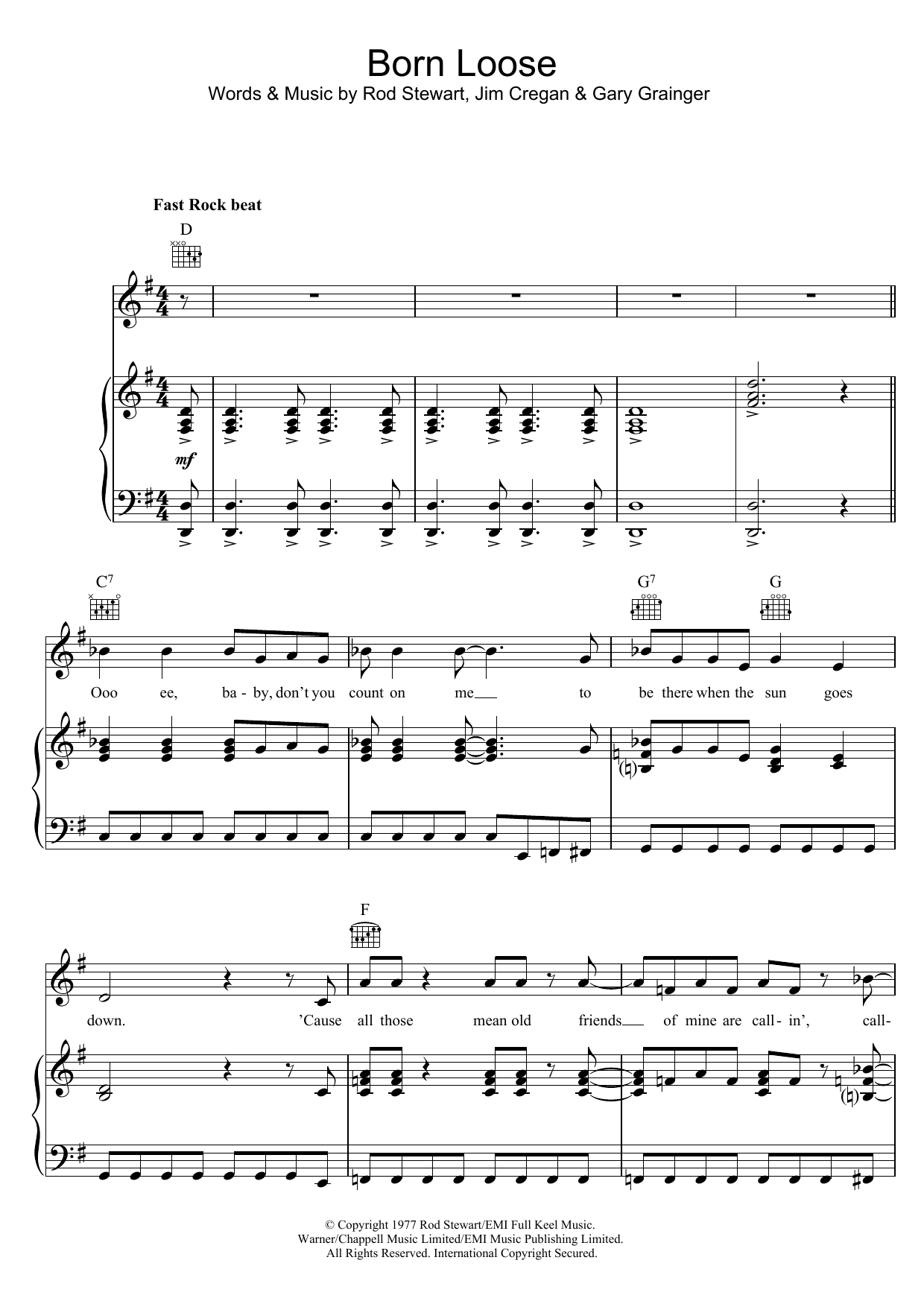 Download or print Rod Stewart Born Loose sheet music, chords and digital score arranged for Piano, Vocal & Guitar Chords. This Pop score includes 8 page(s).