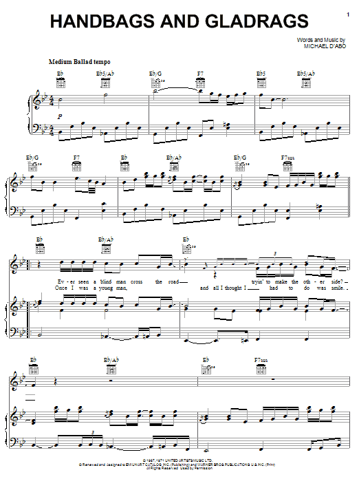 Download or print Rod Stewart Handbags And Gladrags sheet music, chords and digital score arranged for Guitar Chords/Lyrics. This Rock score includes 3 page(s).