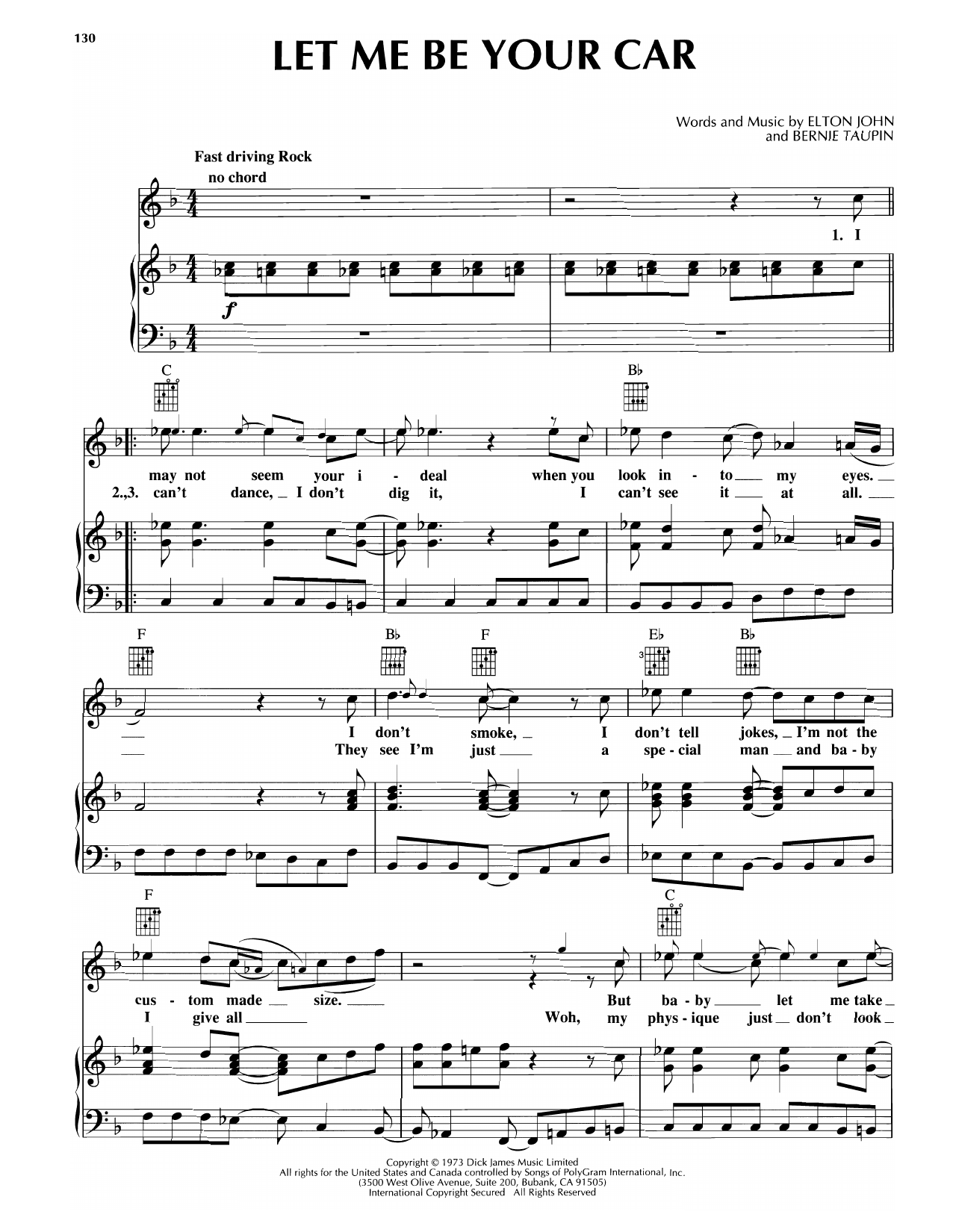 Download or print Rod Stewart Let Me Be Your Car sheet music, chords and digital score arranged for Piano, Vocal & Guitar Chords (Right-Hand Melody). This Rock score includes 4 page(s).