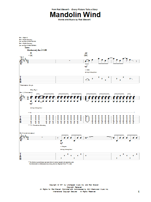 Download or print Rod Stewart Mandolin Wind sheet music, chords and digital score arranged for Guitar Tab. This Pop score includes 33 page(s).