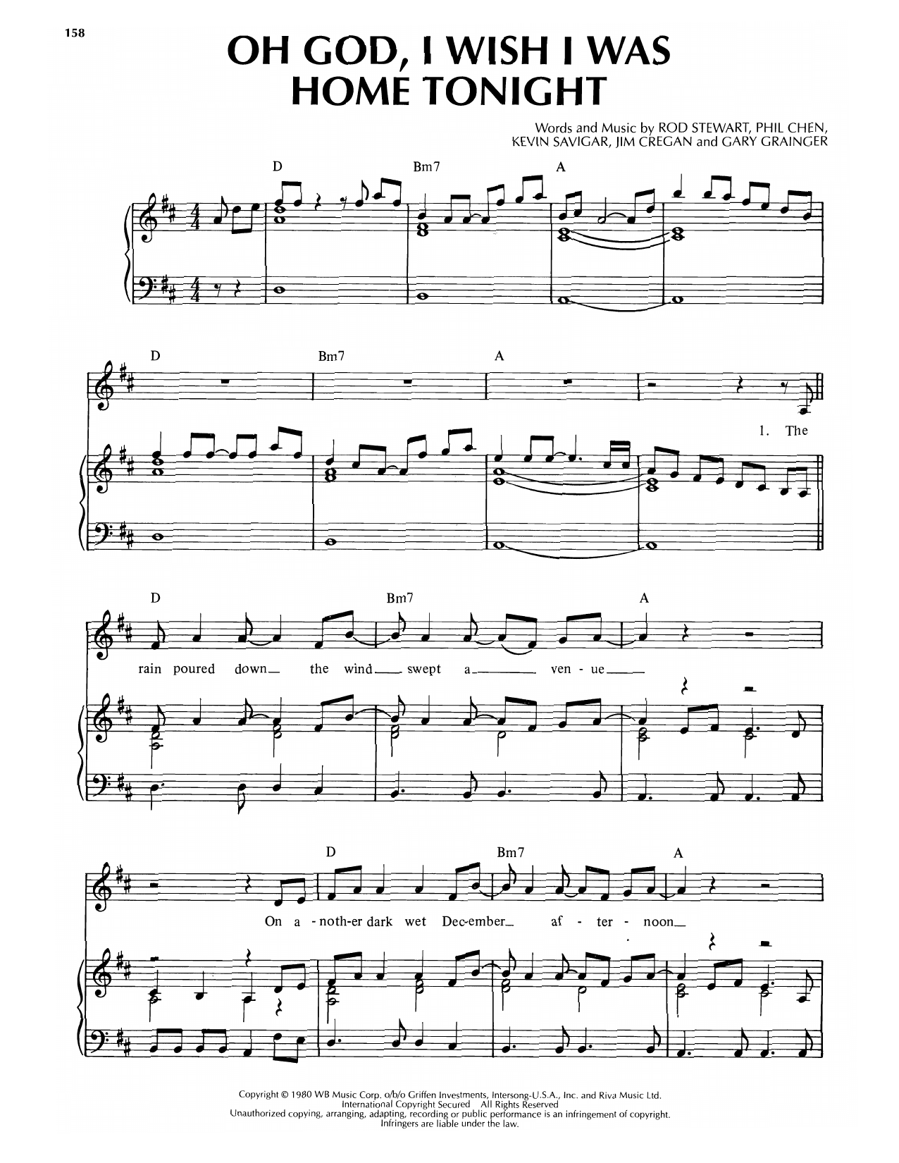 Download or print Rod Stewart Oh God, I Wish I Was Home Tonight sheet music, chords and digital score arranged for Piano, Vocal & Guitar Chords (Right-Hand Melody). This Rock score includes 3 page(s).