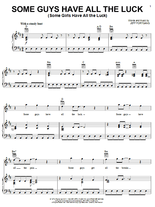 Download or print Rod Stewart Some Guys Have All The Luck (Some Girls Have All The Luck) sheet music, chords and digital score arranged for Piano, Vocal & Guitar Chords (Right-Hand Melody). This Pop score includes 7 page(s).