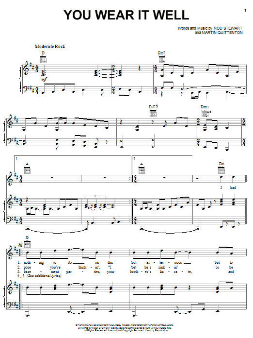 Download or print Rod Stewart You Wear It Well sheet music, chords and digital score arranged for Guitar Chords/Lyrics. This Rock score includes 4 page(s).