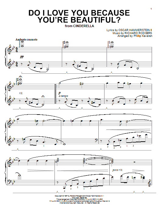 Download or print Rodgers & Hammerstein Do I Love You Because You're Beautiful? (arr. Phillip Keveren) sheet music, chords and digital score arranged for Piano Solo. This Film/TV score includes 3 page(s).