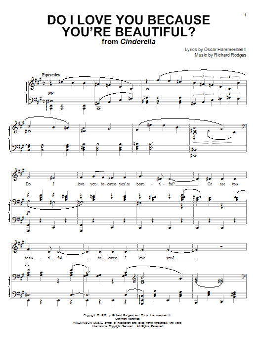 Download or print Rodgers & Hammerstein Do I Love You Because You're Beautiful? sheet music, chords and digital score arranged for Piano & Vocal. This Film/TV score includes 3 page(s).