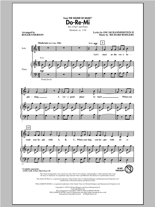 Download or print Rodgers & Hammerstein Do-Re-Mi (arr. Roger Emerson) sheet music, chords and digital score arranged for SAB Choir. This Musical/Show score includes 11 page(s).