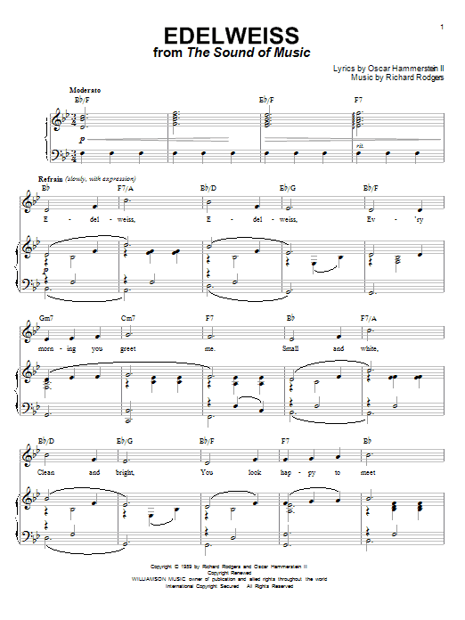 Download or print Rodgers & Hammerstein Edelweiss sheet music, chords and digital score arranged for Vocal Pro + Piano/Guitar. This Pop score includes 3 page(s).