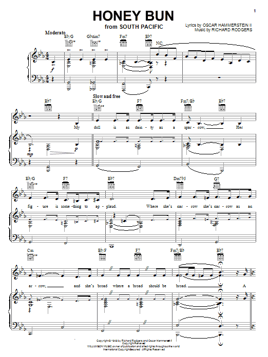 Download or print Rodgers & Hammerstein Honey Bun sheet music, chords and digital score arranged for Piano & Vocal. This Musical/Show score includes 7 page(s).