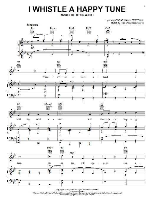 Download or print Rodgers & Hammerstein I Whistle A Happy Tune sheet music, chords and digital score arranged for Piano Solo. This Musical/Show score includes 3 page(s).