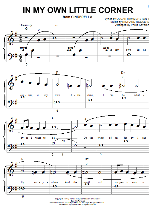 Download or print Rodgers & Hammerstein In My Own Little Corner (from Cinderella) (arr. Phillip Keveren) sheet music, chords and digital score arranged for Big Note Piano. This Children score includes 3 page(s).