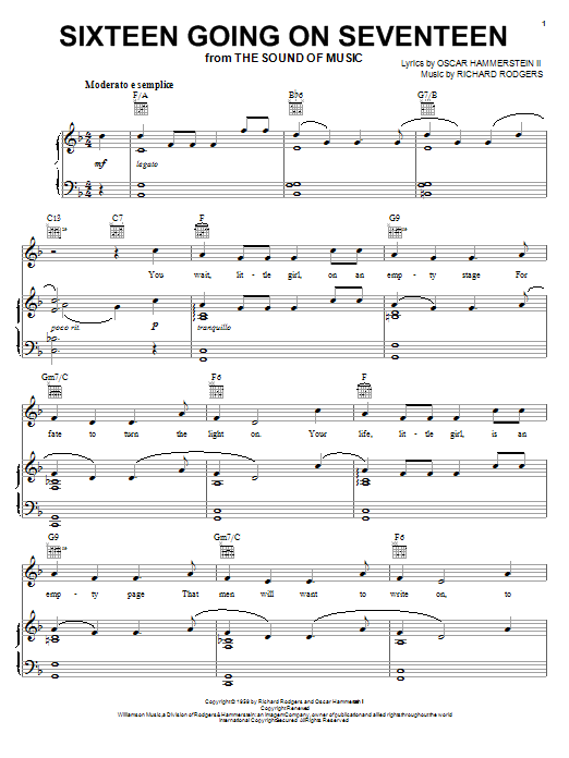 Quick facts Sixteen Going On Seventeen (from The Sound of Music) about digital sheet music