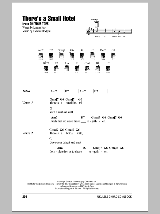 Download or print Rodgers & Hammerstein There's A Small Hotel sheet music, chords and digital score arranged for Ukulele Chords/Lyrics. This Standards score includes 2 page(s).
