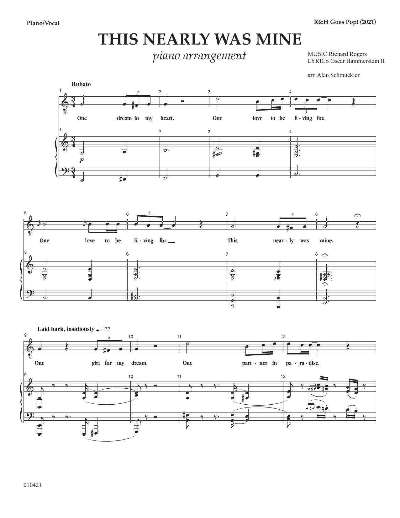 Download or print Rodgers & Hammerstein This Nearly Was Mine [R&H Goes Pop! version] (from South Pacific) sheet music, chords and digital score arranged for Piano & Vocal. This Musical/Show score includes 6 page(s).