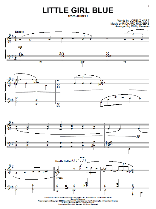 Download or print Rodgers & Hart Little Girl Blue (arr. Phillip Keveren) sheet music, chords and digital score arranged for Piano Solo. This Musical/Show score includes 4 page(s).