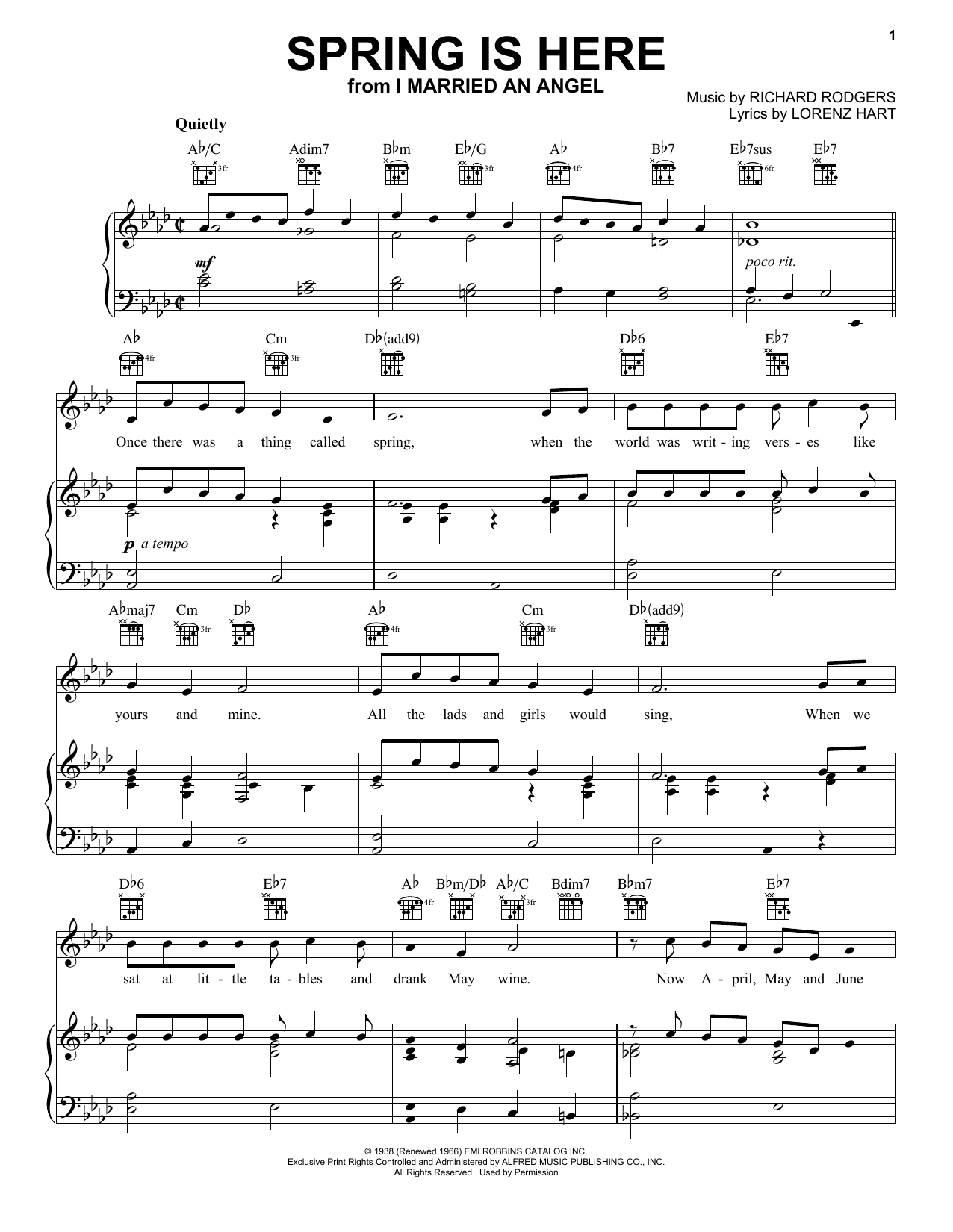 Download or print Rodgers & Hart Spring Is Here sheet music, chords and digital score arranged for Piano Solo. This Jazz score includes 6 page(s).