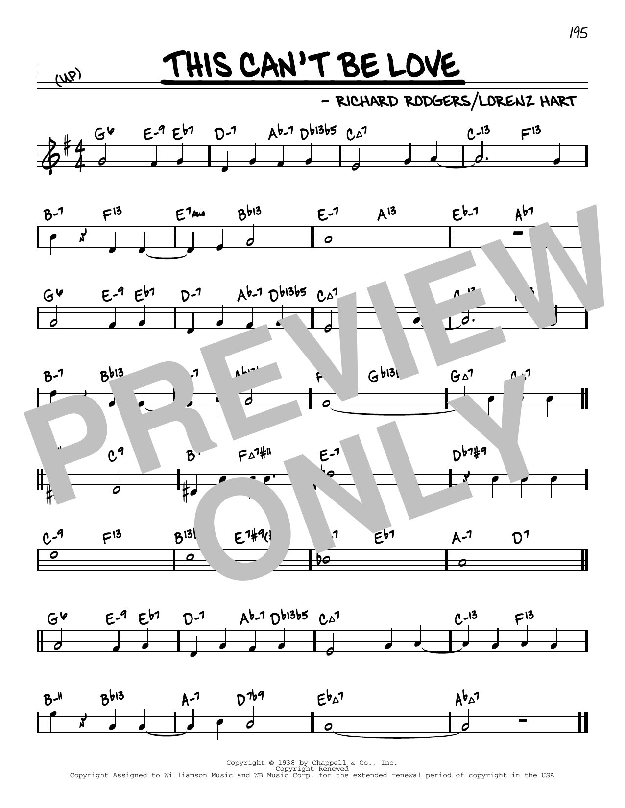 Download or print Rodgers & Hart This Can't Be Love (arr. David Hazeltine) sheet music, chords and digital score arranged for Real Book – Enhanced Chords. This Jazz score includes 1 page(s).