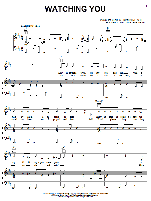 Download or print Rodney Atkins Watching You sheet music, chords and digital score arranged for Easy Guitar Tab. This Country score includes 4 page(s).