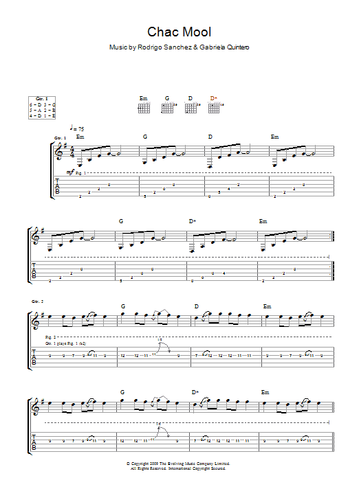 Download or print Rodrigo y Gabriela Chac Mool sheet music, chords and digital score arranged for Guitar Tab. This Pop score includes 3 page(s).