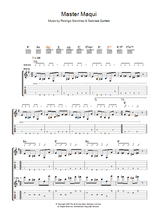 Download or print Rodrigo y Gabriela Master Maqui sheet music, chords and digital score arranged for Guitar Tab. This Pop score includes 14 page(s).