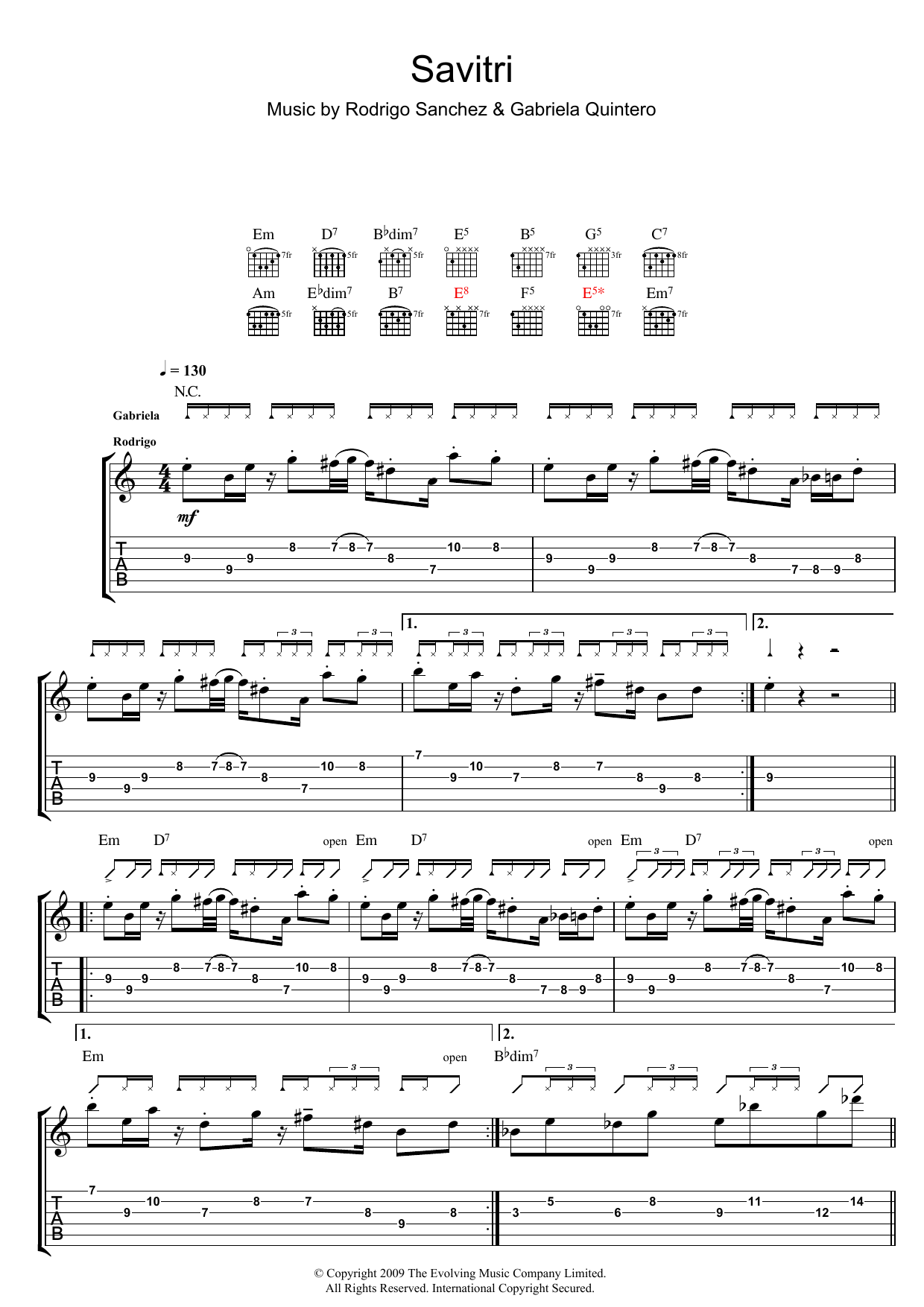 Download or print Rodrigo y Gabriela Savitri sheet music, chords and digital score arranged for Guitar Tab. This Pop score includes 7 page(s).