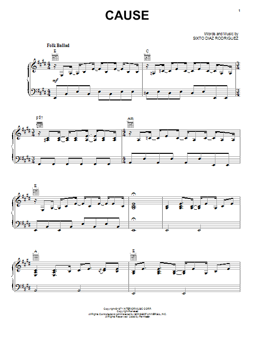 Download or print Rodriguez Cause sheet music, chords and digital score arranged for Piano, Vocal & Guitar Chords (Right-Hand Melody). This Pop score includes 7 page(s).
