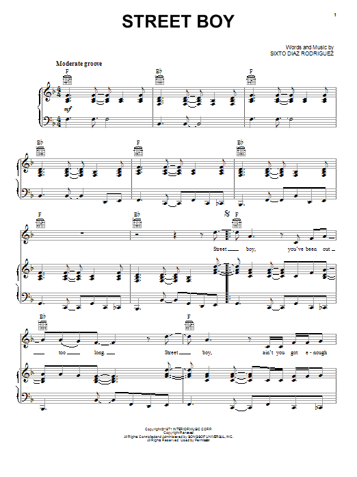 Download or print Rodriguez Street Boy sheet music, chords and digital score arranged for Piano, Vocal & Guitar Chords (Right-Hand Melody). This Pop score includes 6 page(s).