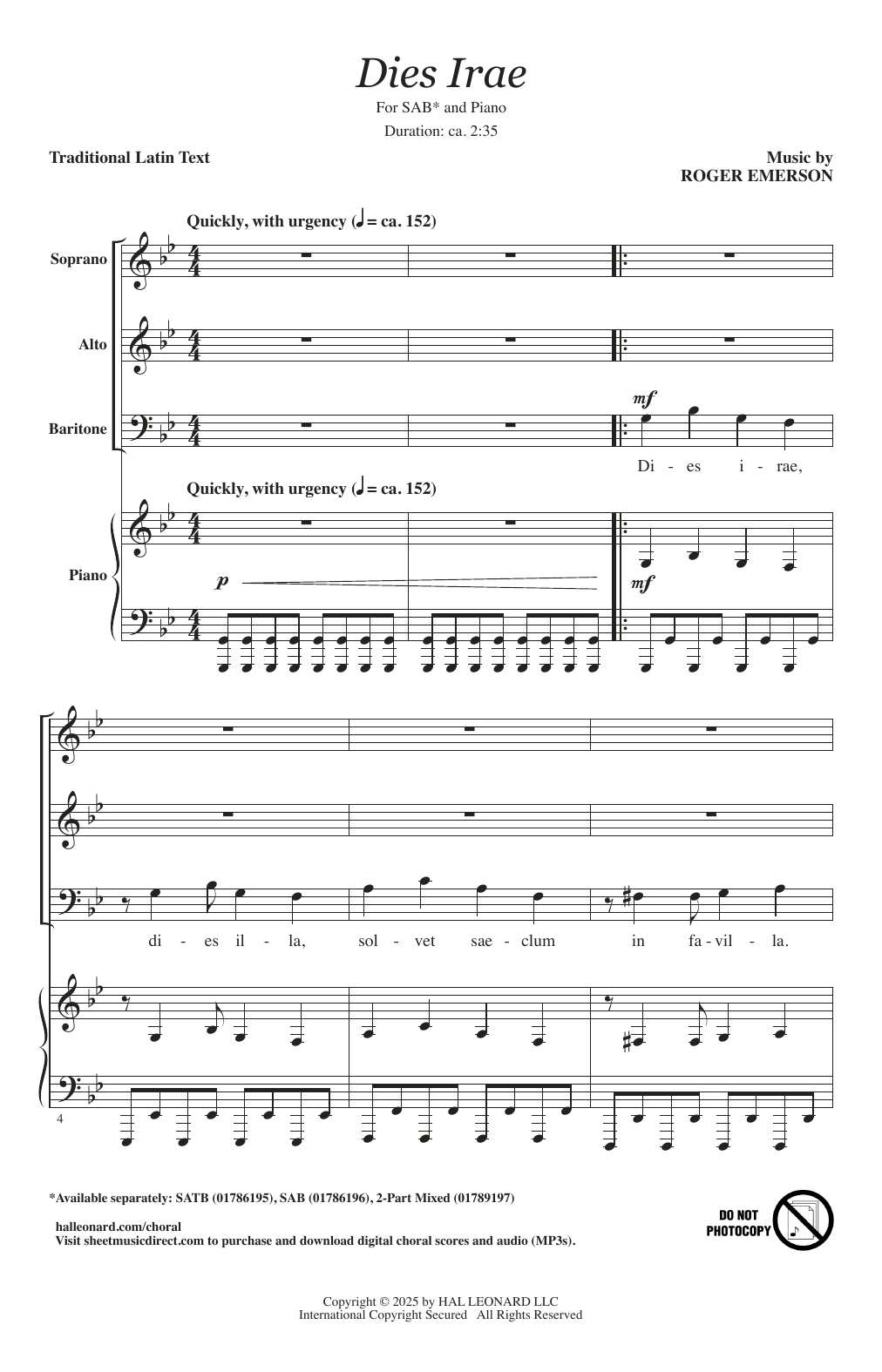 Download or print Roger Emerson Dies Irae sheet music, chords and digital score arranged for SAB Choir. This Concert score includes 11 page(s).