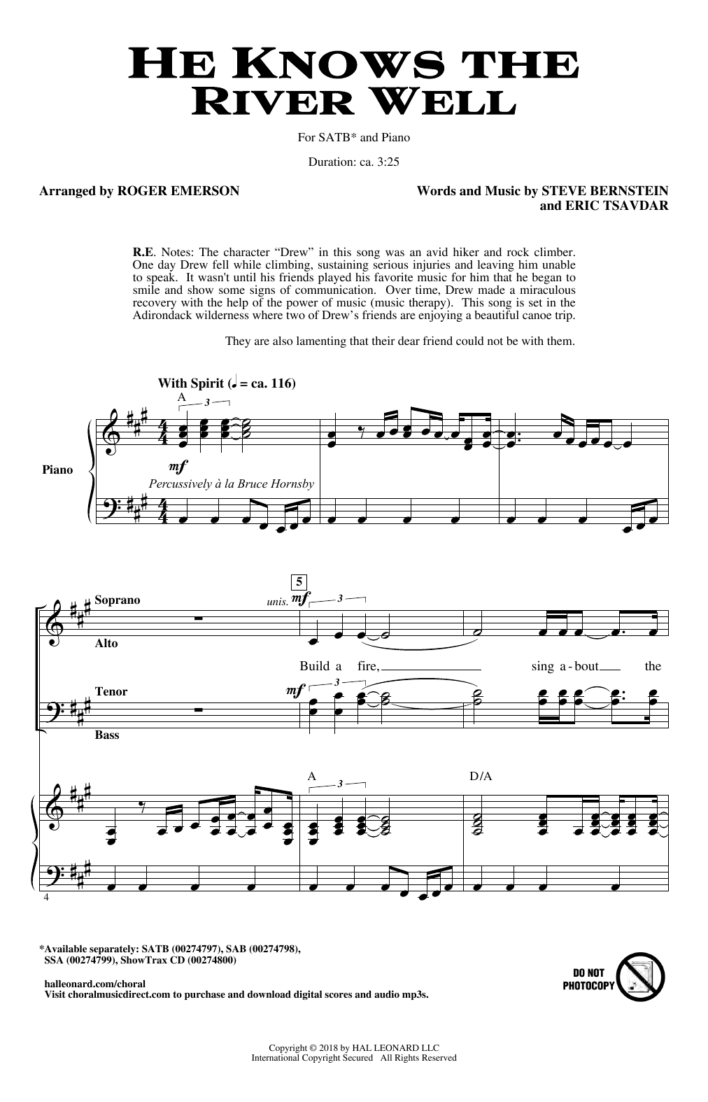 Download or print Roger Emerson He Knows The River Well sheet music, chords and digital score arranged for SAB Choir. This Concert score includes 11 page(s).