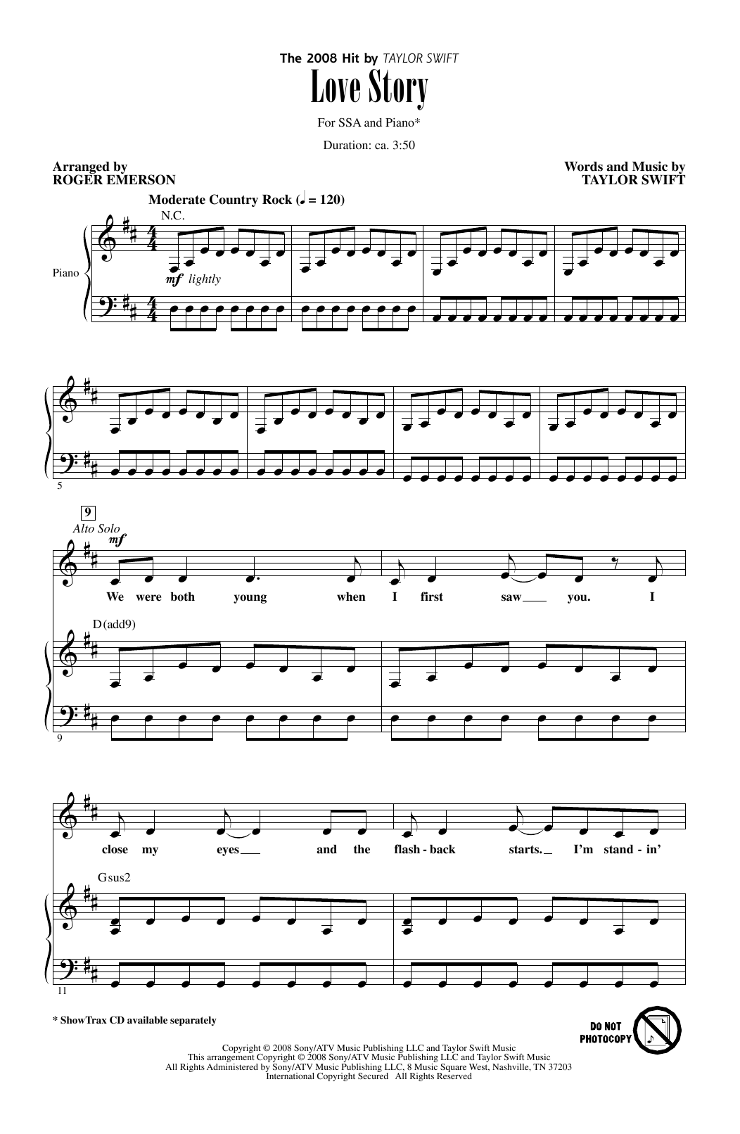 Download or print Roger Emerson Love Story sheet music, chords and digital score arranged for SSA Choir. This Country score includes 14 page(s).